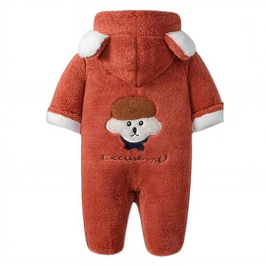 Snuggly Bear Excuse me : Plush Hooded Romper for Babies